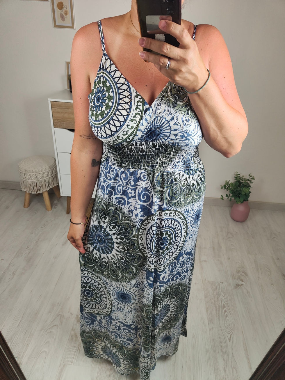Robe longue stretch, fines bretelles, taille élastique - Taille unique